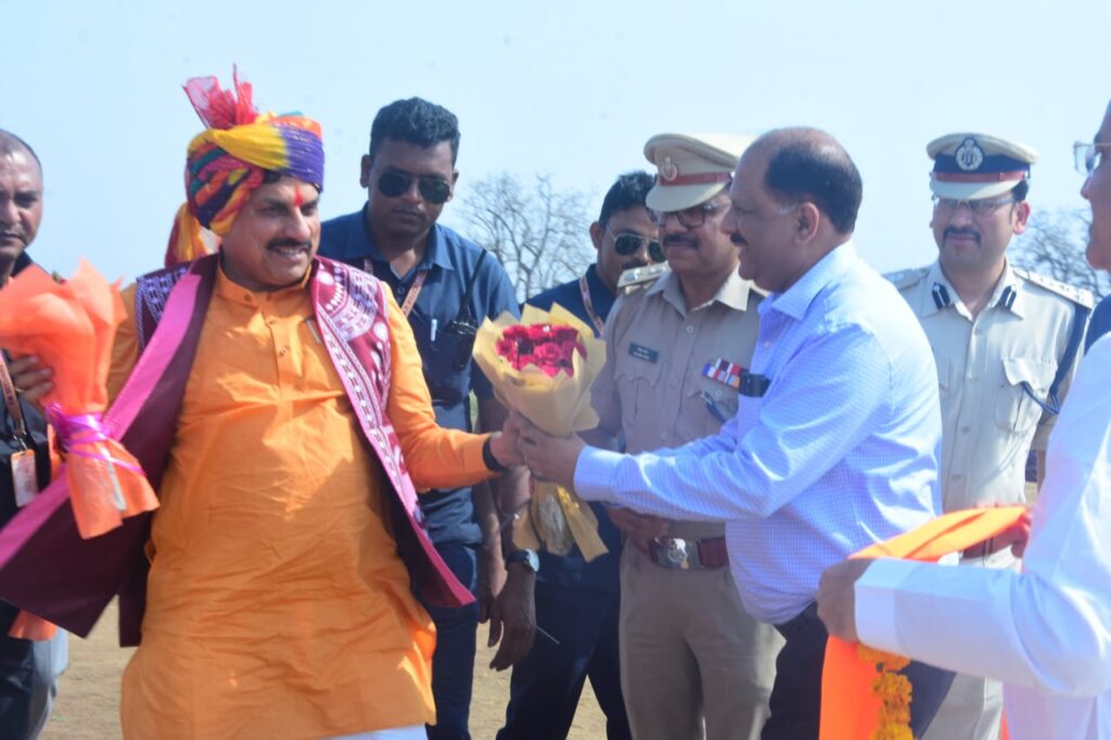 अलीराजपुर 27 मार्च 2025। मुख्यमंत्री कन्यादान योजना अंतर्गत सामूहिक विवाह सम्मेलन कार्यक्रम में सम्मिलित होने के लिए मुख्यमंत्री डॉ मोहन यादव अलीराजपुर के मालवाई स्थित हेलीपेड पहुंचे। मुख्यमंत्री डॉ यादव का हेलीपेड पर आईजी निमिष अग्रवाल , कलेक्टर डॉ अभय अरविंद बेडेकर, पुलिस अधीक्षक राजेश व्यास, भाजपा जिला अध्यक्ष संतोष (मकू) परवाल सहित अन्य जनप्रतिनिधियों ने पुष्प गुच्छ भेंट कर किया।