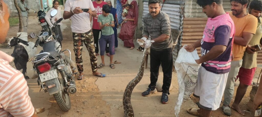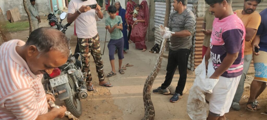 सूचना मिलते ही समाजसेवी बबलू बघेल ने तुरंत वन विभाग को सूचित किया।टीम में शामिल धर्मेंद्र चौहान और सुमर सिंह कनेश मौके पर पहुंचे और स्थानीय लोगों की मदद से सावधानीपूर्वक रेस्क्यू अभियान चलाकर अजगर को सुरक्षित पकड़ा। इसके बाद उसे जंगल क्षेत्र में छोड़ा गया।ग्रामीणों ने राहत की सांस ली।